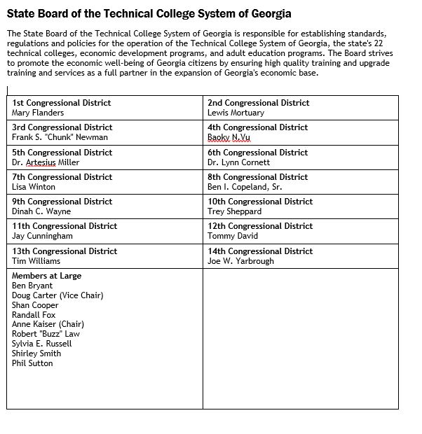Catalog & Student Handbook 2019-2020 > Coastal Pines General Information > State Board of the Technical College System of Georgia