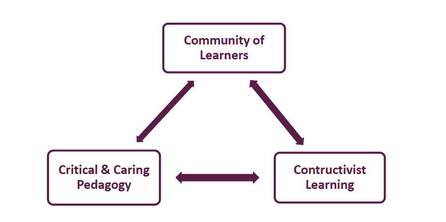• Critical and Caring Pedagogy: An educative learning community takes the position that a hopeful, democratic future depends upon educators committed to emancipatory education (Giroux, 1997). It reflects Landon Beyers’ description of an emancipatory curriculum in teacher education as one that is designed to emphasize the following: equal access to knowledge, images of human equality, development of a “critical consciousness,” self-reflectivity, creativity, cultural acceptance, moral responsibility, democratic empowerment, and a pedagogy of caring (Beyer & Apple, 1998). It affirms Nel Noddings’ belief that for schools to be true centers of learning, they must embrace caring in all its forms—care for self, for intimate others, for associates and acquaintances, for distant others, for nonhuman animals, for plants and the physical environment, for the human-made world of objects and instruments, and for ideas (Noddings, 2005).